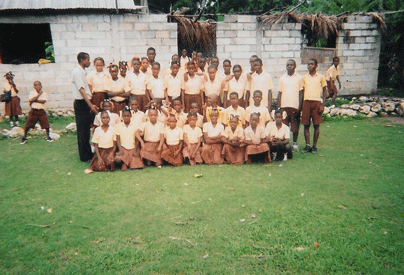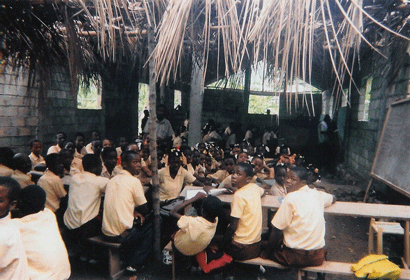 Les élèves dans l'une des classes de l'école nationale de Rivière-Salée (Après la construction):