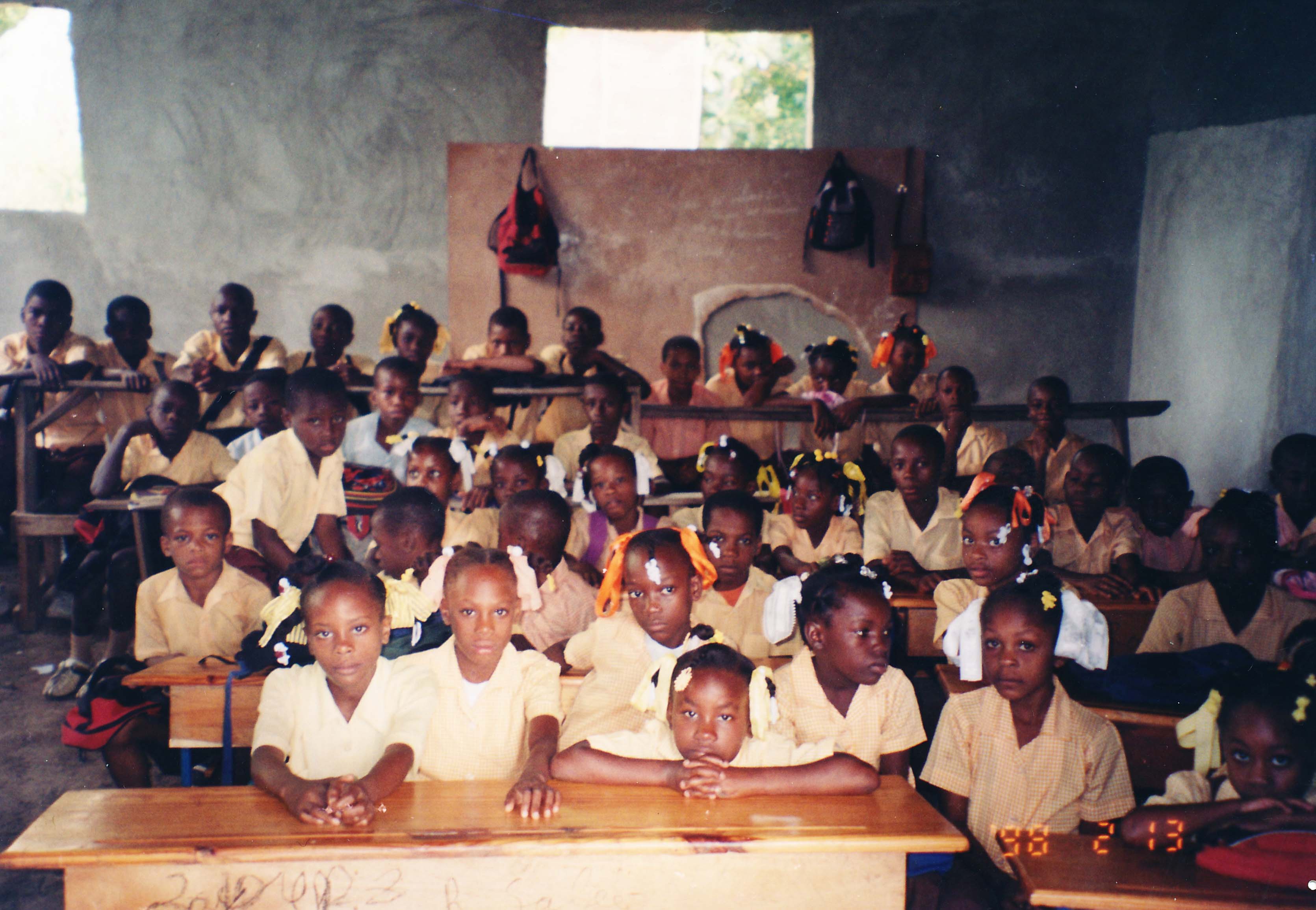 Les élèves dans l'une des classes (Avant la poursuite de la construction).